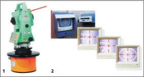 Лазер для определения траектории движения микрощита (1) и лазерная мишень (2):